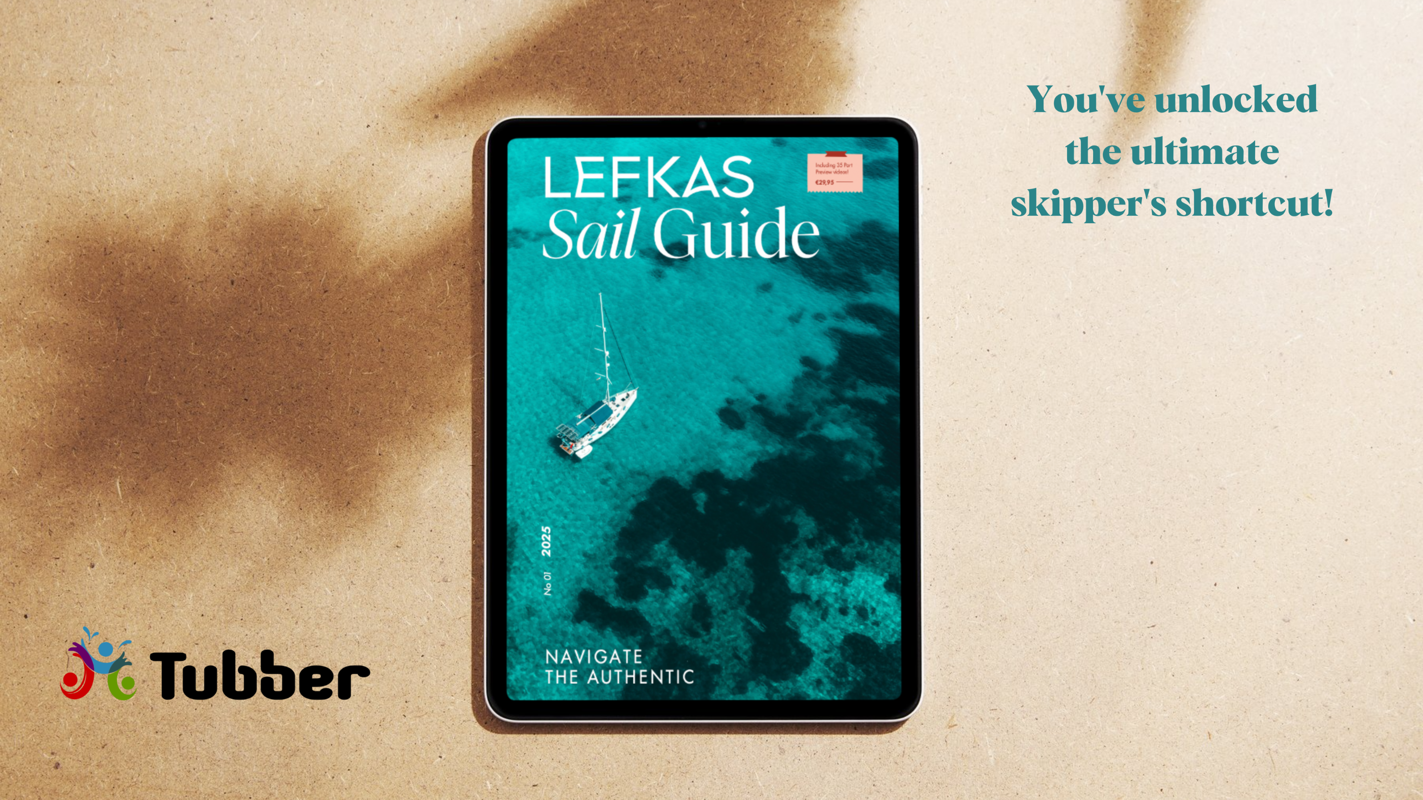 Thanks to Tubber, you now have FREE access to the Lefkas Sail Guide for one year! No subscription, no hidden fees. This guide will be your trusted sailing companion, helping you navigate the Ionian with ease, save precious time, and unlock the most stunning spots along the way. Check you inbox and find your personal access link. Happy sailing!